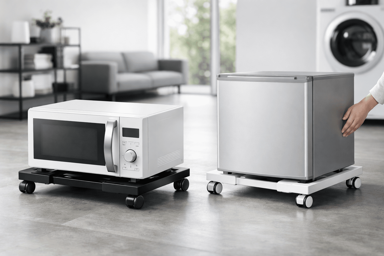 blog 空気清浄機・サーキュレーターの日常の移動に必須。山崎実業 Tower の台車は、適切なサイズ・スタイリッシュなデザイン・タイヤ隠し・耐荷重100kgが魅力。無印との比較付き。